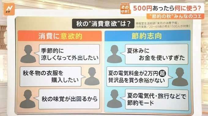 夏が終わり、年末年始にかけて出費がかさみやすい時期です。秋の“消費意欲”についてのアンケートでは様々な声がありました。(※1.)