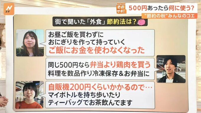 「お昼ご飯を買わずにおにぎりを作って持って行く。ご飯にお金を使わなくなった」