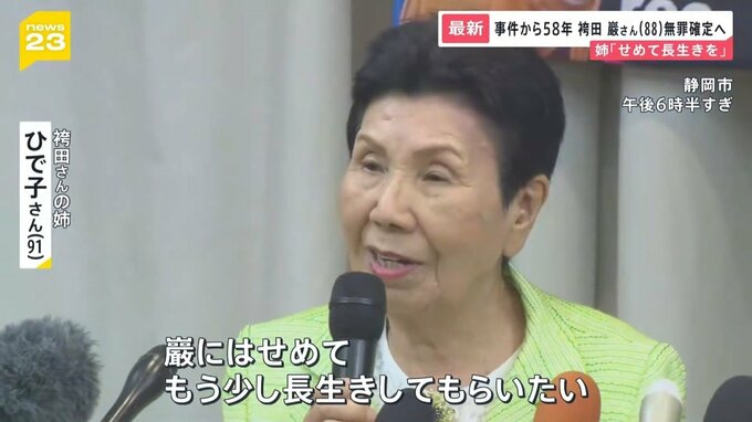 事件から58年 袴田巖さん無罪確定へ 姉「せめて長生きを」