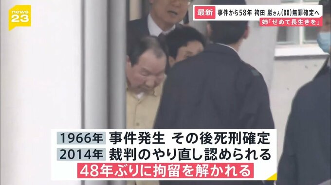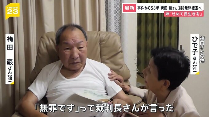 1966年に一家4人が殺害された事件のやり直しの裁判で無罪判決を受けた袴田巖さん。検察トップが控訴しないと表明し無罪が確定します。袴田さんは現在88歳。事件から58年もの年月が過ぎました。姉・ひで子さんは「もう88歳だから多くは望みませんが、巖にはせめてもう少し長生きしてもらいたい」と語りました。
