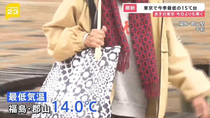 福島県郡山市では最低気温が15℃を下回り、上着を着て、ストールを巻く人の姿も…