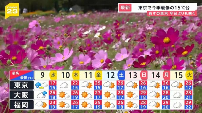 9日は11月中旬並みの気温 3連休は秋晴れに