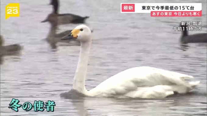 新潟県の瓢湖には、冬の使者・白鳥がやってきました。8日は約30羽の白鳥が確認できたそうです。