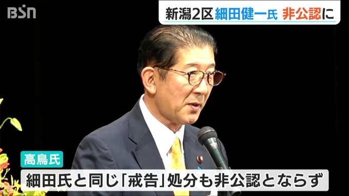 また、細田さんが非公認となる一方で、不記載額が500万円を超えていたとして同じ『戒告』の処分を受けた前職の高鳥修一さんには非公認の判断は下りませんでした。
