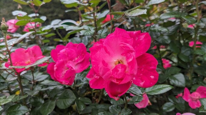なかでも「スカーレットボニカ」というフランス産の赤いバラは生命力にすぐれ、今年も多くの美しい花を咲かせています。そのビビッドな色合いは見る人を勇気づけるようで、ファンも多いといいます。