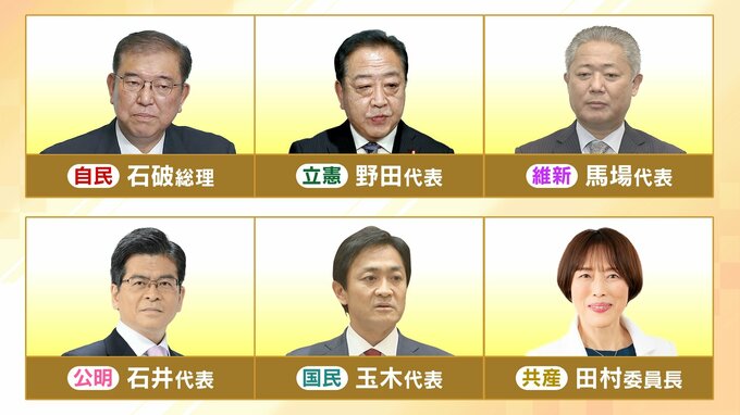 日本維新の会の馬場伸幸代表は「総理は総裁選挙の前、最中にはすぐに解散はやらないとおっしゃった。それはどこかに行ってしまった。」と指摘。共産党の田村智子委員長は、「これだけの物価高ですから、政治の責任でどうやって賃上げを進めるのか、中小企業への直接の支援が必要だ。」と主張。国民民主党の玉木雄一郎代表は「政治に対する信頼が失われてしまったら、難しい政策なんか何一つできないんですよ。御党の危機じゃないんです、日本の危機なんです」と訴えました。