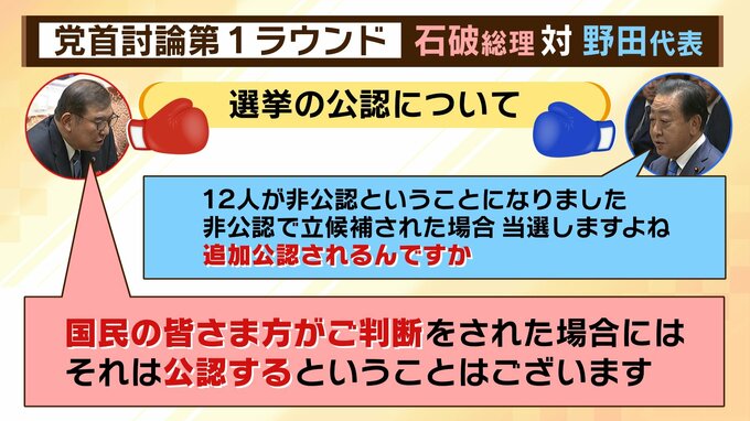 ――ポイントを見ていきましょう。選挙後の公認について野田代表が、「当選したら追加公認されるのか」と聞き、石破総理が「国民の皆様方がご判断された場合には、それは公認するということはございます。」と言い切りました。