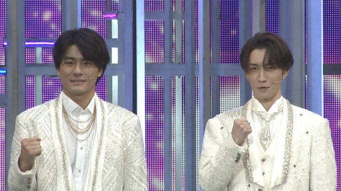 Snow Manの渡辺翔太さんとSixTONESの森本慎太郎さんが、女優の紫吹淳さん、鳳蘭さん、21人組アイドルグループ・少年忍者とともに『DREAM BOYS』初日開幕記念会見に登場しました。
