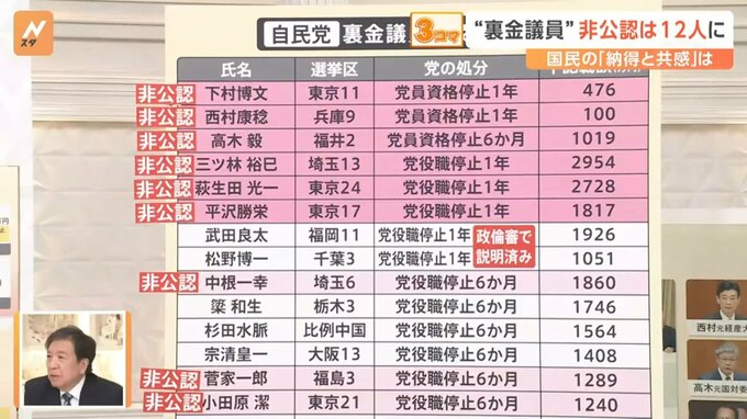 “裏金議員” 非公認は12人に 国民の「納得と共感」は