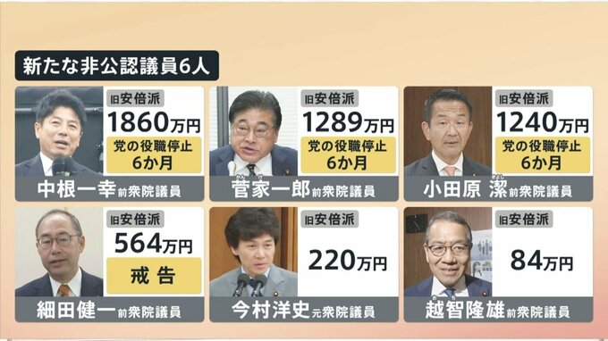 共通するのは全員「旧安倍派」ですが、不記載額はバラバラで処分を受けていない人もいます。