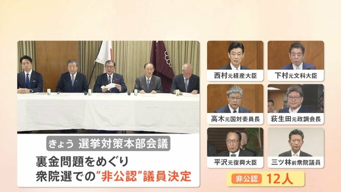 9日、衆議院が解散し事実上の選挙戦に入りました。自民党は選挙対策本部会議を開き、裏金問題をめぐり衆院選での“非公認”議員を決定しました。