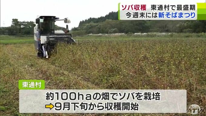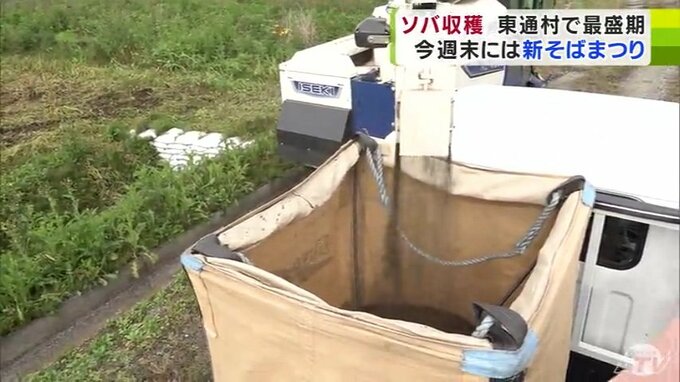 青森県東通村では、ソバの実の収穫作業が最盛期を迎えています。今週末には「新そば」が味わえるイベントもひかえていて、作業は急ピッチで進んでいます。