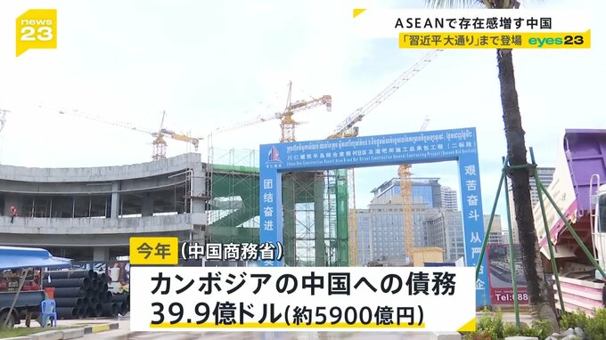 中国商務省によりますと、2024年のカンボジアの中国への債務は39.9億ドル、約5900億円に達しています。