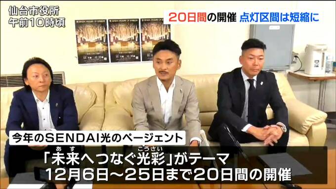 実行委員会は10日、会見を開き、今年の光のページェントについて「未来(あす)へつなぐ光彩」をテーマに12月6日から25日までの20日間開催すると発表しました。