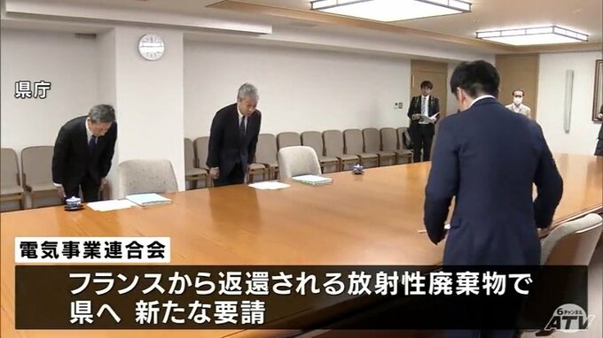 大手電力会社で構成する電気事業連合会の佐々木敏春副会長らは、宮下宗一郎知事を訪ね、フランスから返還される放射性廃棄物について新たな要請をしました。