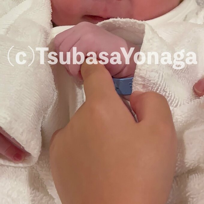 続けて、「妊娠中、沢山の方に大変温かいお気遣いをいただき、心より感謝申し上げます」と、感謝し、生まれたばかりの赤ちゃんが、指を掴んでいる写真をアップ。
