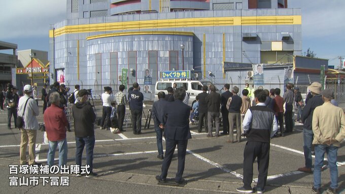 百塚怜候補:「県民の暮らしをないがしろにしたこの4年間、コロナがあり、ウクライナ戦争があり、物価高が来て、賃金が上がらない。こんな中で何がウェルビーイングかと私は怒りを持っています」「この新田県政を倒して、新しい富山を作って、それをどんどん日本に広めたい。福祉の力を、底力を今この富山から発揮したいんです」