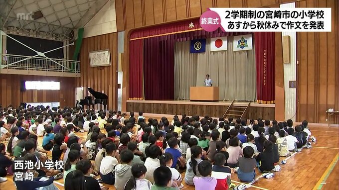 2学期制を導入している宮崎市の小中学校では、11日から秋休みです。それぞれの学校で1学期の終業式が行われました。宮崎市の西池小学校で行われた終業式では、まず、黒木伸郎校長が児童たちに「1学期にできなかっ…