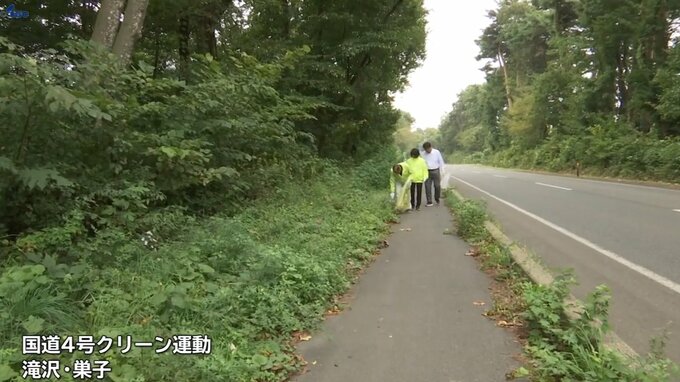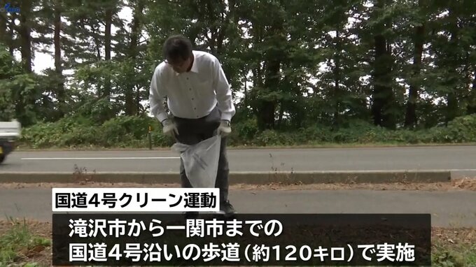 10日はおよそ70人が参加し、岩手県滝沢市から一関市までの国道4号沿いの歩道、およそ120キロの区間で清掃活動が行われました。
