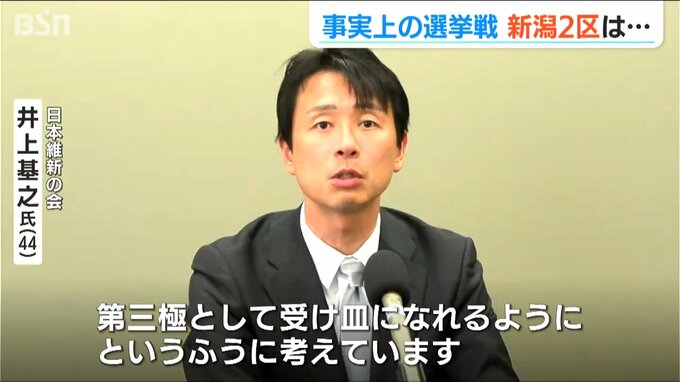 新潟2区では、日本維新の会の新人・井上基之さんも立候補を表明しています。