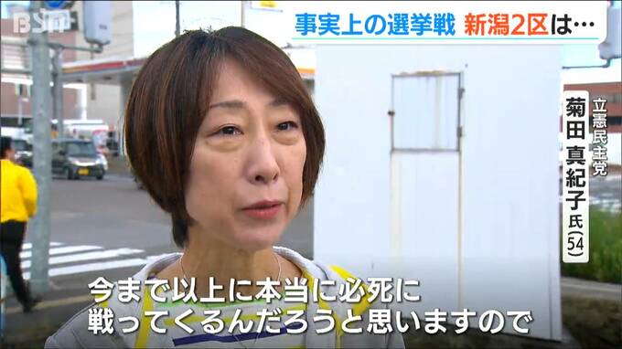 細田健一さんと同じ新潟2区から出馬する予定の、立憲民主党の前職・菊田真紀子さんも選挙モード。イメージカラーの黄色に身を包み、朝から街頭に立ちました。