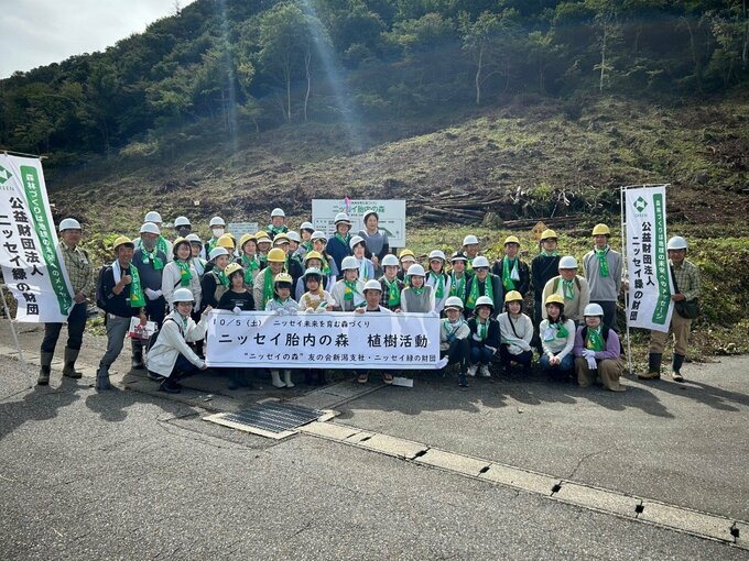 新潟県胎内市赤谷にある『ニッセイ胎内の森』で少花粉スギ800本の植樹を行ったのは、日本生命新潟支社の職員が所属するボランティア組織・”ニッセイの森”友の会のメンバーら約60人。『ニッセイの森』は、胎内市のほか全国に209か所あり、これまでに138万本以上を植樹しているということです。