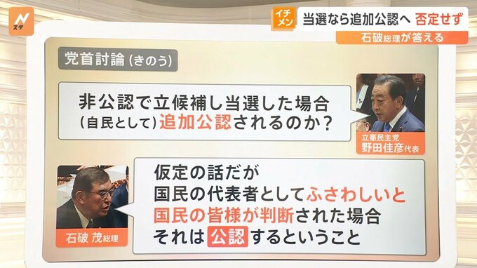 「仮定の話だが、国民の代表者としてふさわしいと国民の皆様が判断された場合、それは公認するということ」