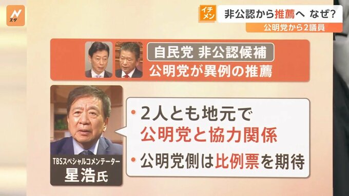 「2人とも地元で、公明党とは協力関係にあった。公明党側は比例票を期待しているのではないか」