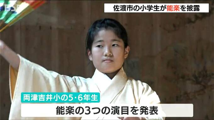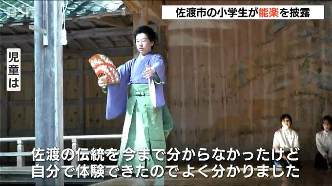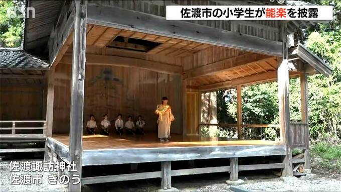佐渡市の伝統芸能『能楽』の稽古を重ねてきた地元の小学生が、新潟県の有形民俗文化財に指定されている「佐渡諏訪神社」の“能舞台”でその成果を披露しました。