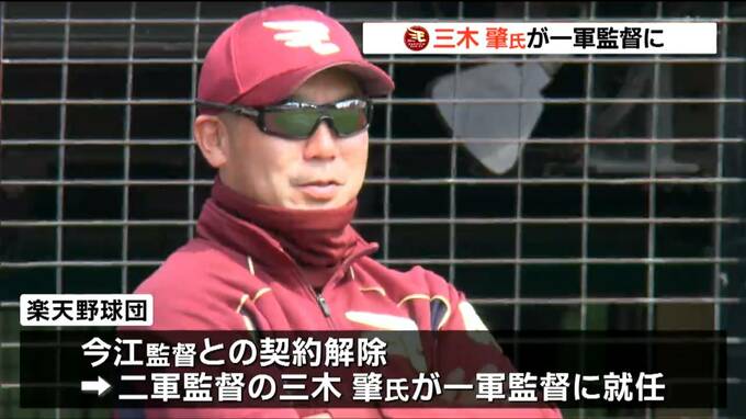 楽天野球団は11日、2年契約を結んでいた今江敏晃監督の解任を発表しました。あわせて次の監督には2軍監督を務めた三木肇氏が就任することが決まりました。三木氏は楽天で2度目の1軍監督就任となります。