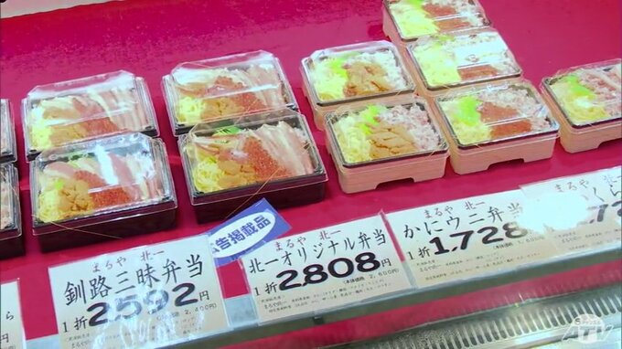 初出店は2つの店舗で、このうち釧路市の「まるやきたいち」の海鮮弁当はカニ、ウニ、イクラといった新鮮な魚介類が敷き詰められた北海道らしい逸品です。