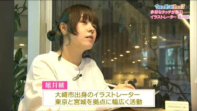宮城県大崎市出身のイラストレーター亀井桃さん。東京と宮城を拠点とし、様々なタッチのイラストを武器に活動する、いま大注目のイラストレーターです。