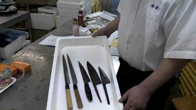 吉勝 中村真也社長「見つかったのは全部で5本、このうち2本は研いで元に戻った感じ。残っているものが少ない中で、包丁は魚屋さんにとって欠かせないものなので良かった」