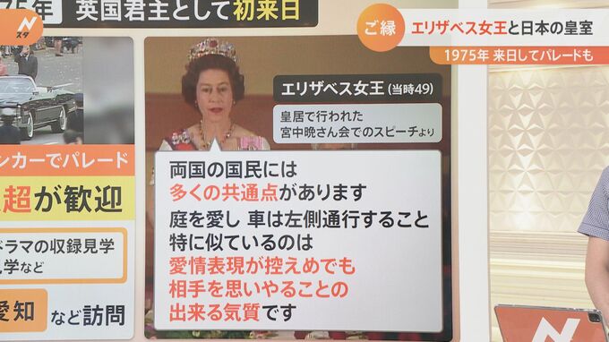 そして、エリザベス女王(当時49)は皇居で行われた宮中晩餐会でこんなスピーチを行いました。日本とイギリスには共通点があるということを見つけられたそうです。