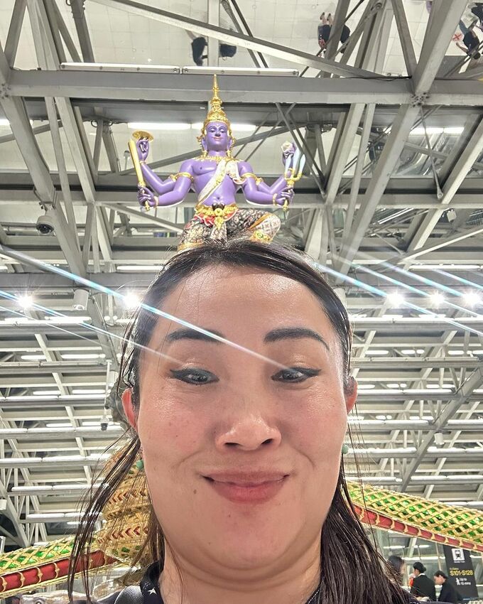 キンタロー。さんは「タイの神々達」との書き出しで、自身の「変顔写真」を次々に投稿。「※タイの人に笑われました!! 吉報です!変顔はタイでも通用しました」と誇らしげに伝えました。