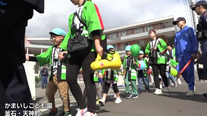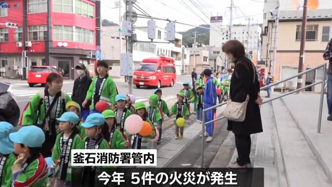 11月9日に始まる全国秋の火災予防運動を前に11日、岩手県釜石市でこども園の園児たちが火の用心を呼びかけながら市内をパレードしました。
