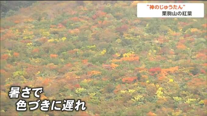 しかし、ここ数日の急激な寒暖差で紅葉は一気に進んでいるということです。栗駒山では、来週にも登山口がある「いわかがみ平」付近でも紅葉が見ごろを迎える見込みです。