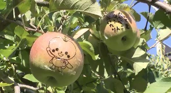 リンゴが赤く色づいたあとにシールを剥がすと、児童のイラストや長沼のマスコットキャラクター『ふくりん』の輪郭が浮かび上がるということです。