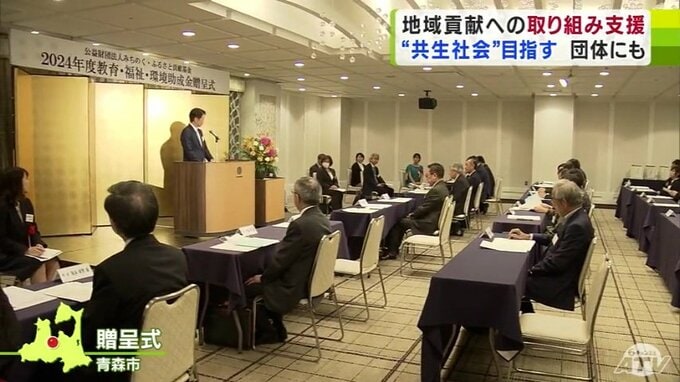 教育や福祉などの分野で地域貢献への取り組みを支援する「みちのく・ふるさと貢献基金」の助成金贈呈式が青森市で行われました。