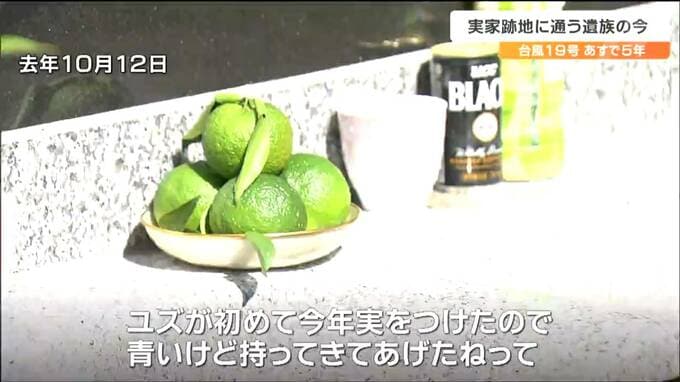 2023年の命日には実家の跡地でもあるこの場所から自宅に移植したユズの実を手向けました。