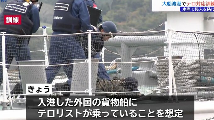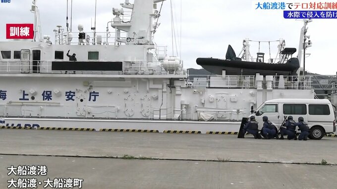 岩手県大船渡市の大船渡港で11日、テロリストの侵入を水際で防ぐための訓練が行われました。