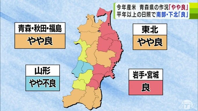 東北全体の作況は「やや良」で、岩手県と宮城県が「良」、山形県が「やや不良」となる見通しです。