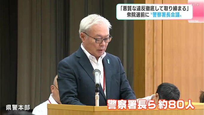 衆院選を前に、選挙違反の取り締まりについて協議を行う警察署長会議が開かれました。会議には、高知県内の警察署長らおよそ80人が出席しました。衆院選に向け県警は10日、選挙違反の取締本部を設置しています。高…