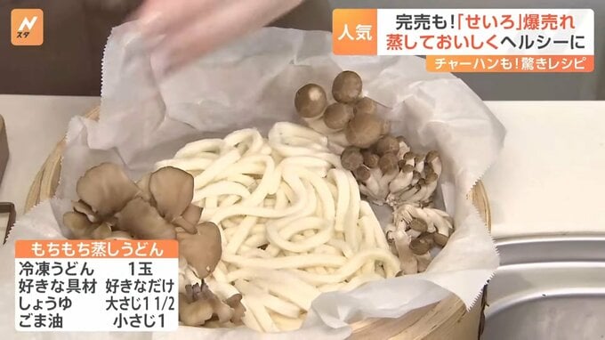 冷凍うどんも、好きな具材としょうゆを入れ、10分蒸すだけで、もちもちでボリューム満点の1品が完成します。