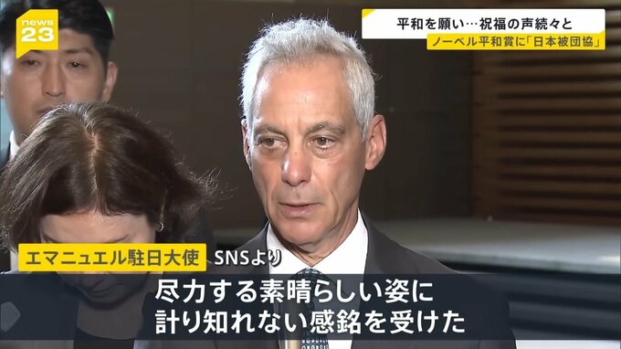 ノーベル平和賞 受賞決定で祝福の声続々と
