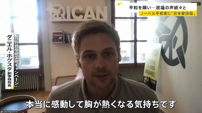 「本当に感動して胸が熱くなる気持ちです。核兵器の脅威がおそらくこれまでで最も高い、非常に重要なタイミングでの受賞です」