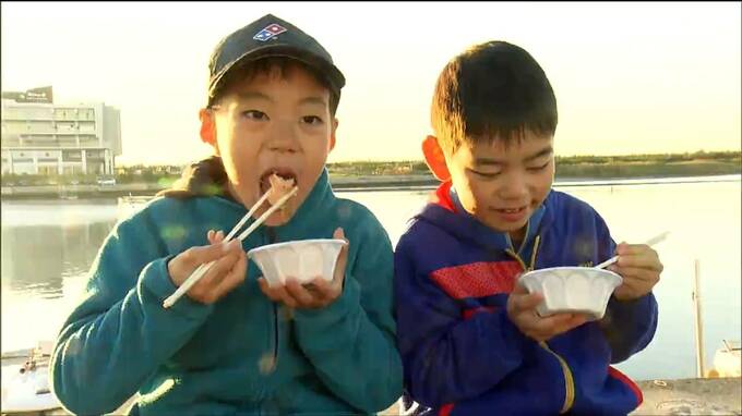 名取市のゆりあげ港朝市で開かれた「はらこめし祭り」。会場では、北海道産のサケの身とイクラに県産のひとめぼれを使った「はらこ飯」が無料で振る舞われ、訪れた人たちが旬の味を満喫していました。