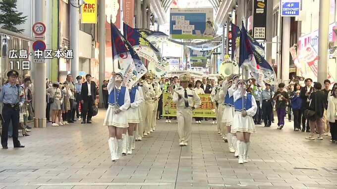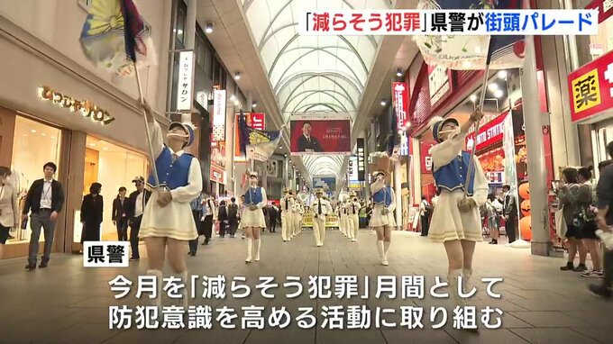 防犯意識を高めてもらおうと広島県警が街頭パレードをしました。
