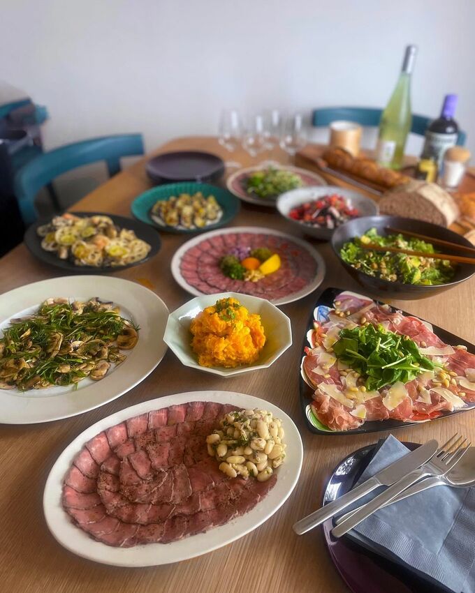 投稿された写真では、ローストビーフや、パン、野菜を使ったメニューなど、色とりどりの美味しそうな料理が並んでいます。