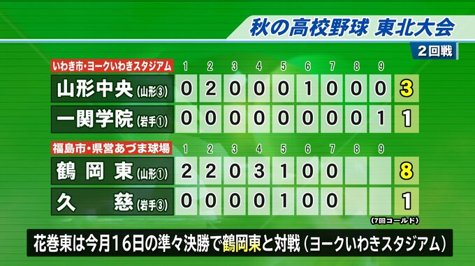 花巻東は16日の準々決勝で久慈に勝った鶴岡東と対戦します。